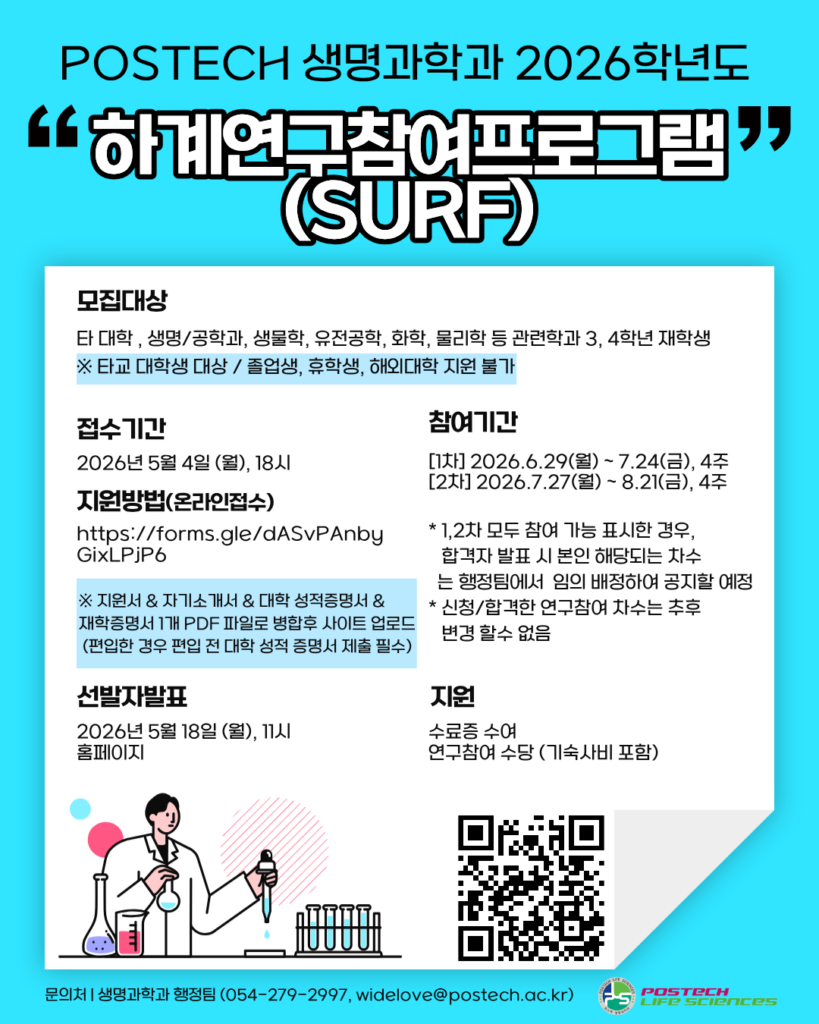 [생명과학과] 2026학년도 하계연구참여 프로그램 (SURF) 안내